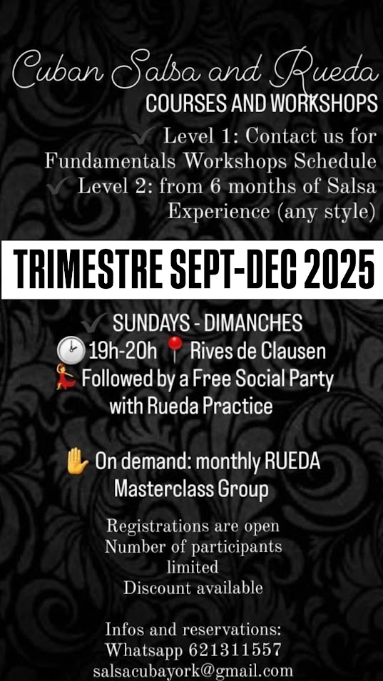 Informations et réservations par Whatsapp 621311557 ou mail: salsacubayork@gmail.com.